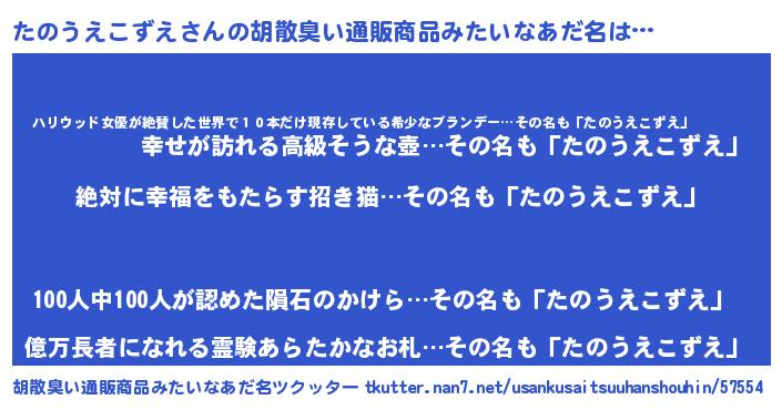 | 意味不明あだ名 | 『永久保存たのうえこずえ』 |