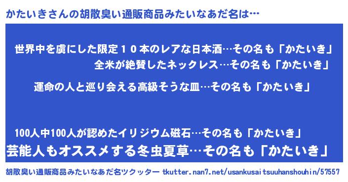 | 意味不明あだ名 | 『かたいきフォーエバー』『自称かたいき』 |