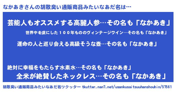 | ヘコむあだ名 | 『酢こんぶ』『なかぷりん』 |