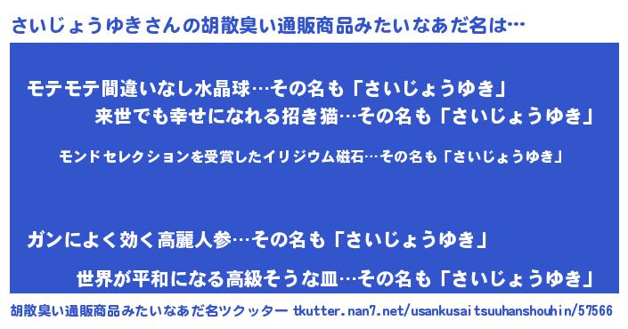 | 伝説のあだ名 | 『救世主となる占い師さいじょうゆき』 |