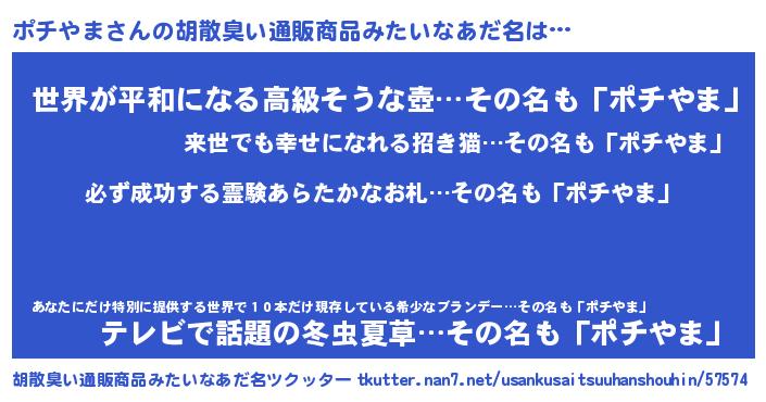 | 意味不明あだ名 | 『めかぶ科ポチやま属』『自称ポチやま』 |