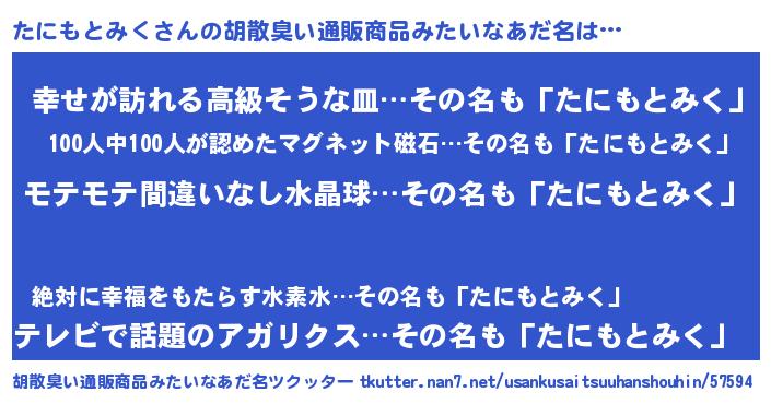 | ヘコむあだ名 | 『たにもー』『つくし』『たにぷりん』 |