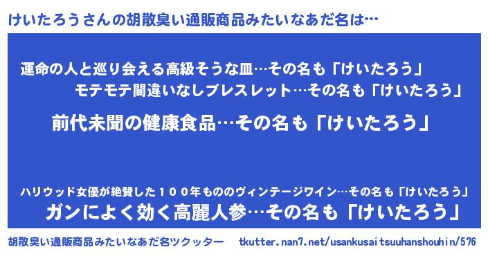 | 意味不明あだ名 | 『永久保存けいたろう』『自称けいたろう』 |