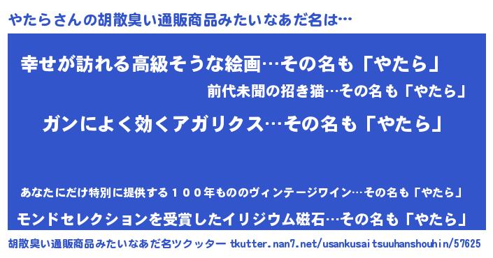 | 意味不明あだ名 | 『自称やたら』『やたらフォーエバー』 |