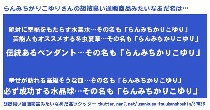 | 意味不明あだ名 | 『とにかく怪しいらんみちかりこゆり』 |