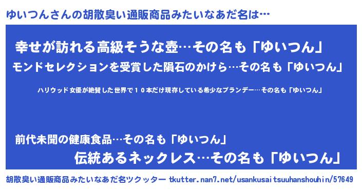 | 意味不明あだ名 | 『住所不定無職ゆいつん(89歳)』 |