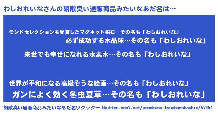 | 欧米人風あだ名 | 『アンジェラ・わしおれいな』 |