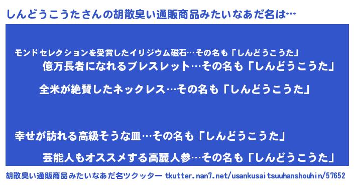 | 意味不明あだ名 | 『とにかく怪しいしんどうこうた』 |
