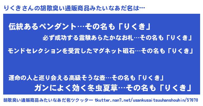 | ヘコむあだ名 | 『りくお』『りくっふぃ~』『つくし』 |