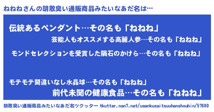 | 男性向けラノベタイトル風あだ名 | 『ノーゲーム・ノーネネネ』 |