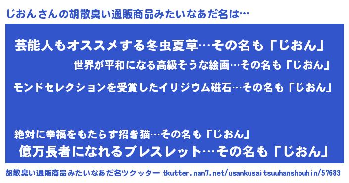 | 意味不明あだ名 | 『眠気覚ましガムじおん味』『自称じおん』 |