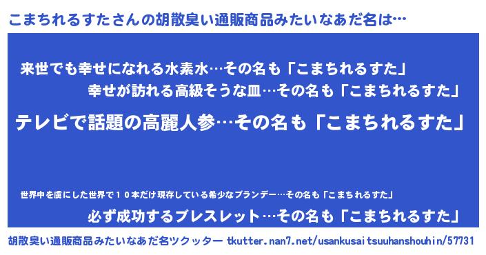 | ヘコむあだ名 | 『こまちれるすた(笑)』『こまふぇ~』 |
