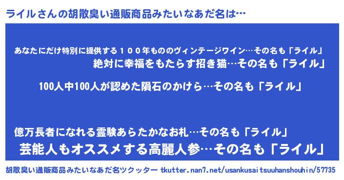 | ヘコむあだ名 | 『ライル(遠い目)』『ライにー』 |