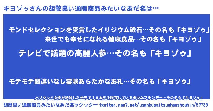 | ヘコむあだ名 | 『キヨゾゥ(小並感)』『キヨふぇ~』 |