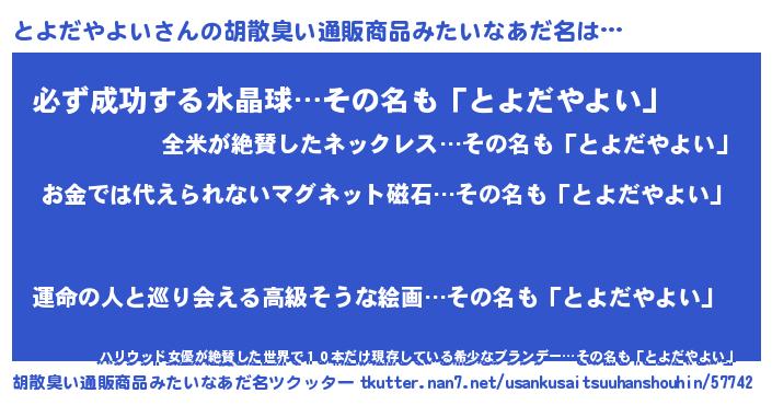 | ヘコむあだ名 | 『とよふぇ~』『とよっ子』『つくし』 |