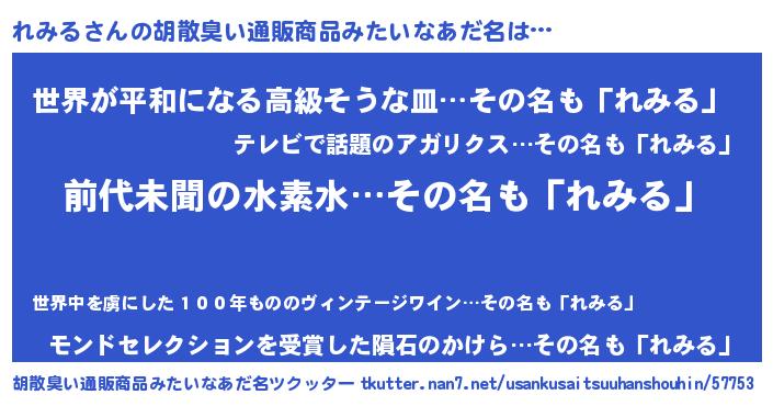 | 意味不明あだ名 | 『永久保存れみる』『れみるフォーエバー』 |