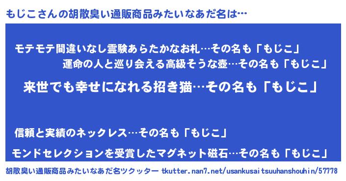| ヘコむあだ名 | 『もじこ(笑)』『もじっふぃ~』 |