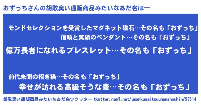 | ヘコむあだ名 | 『おずにー』『なまこ酢』『おず太郎』 |