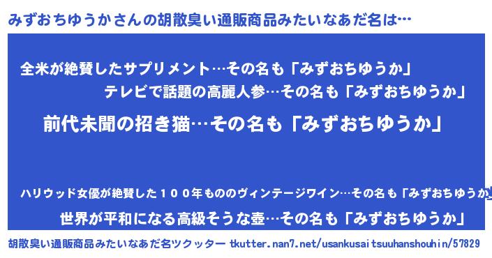 | ヘコむあだ名 | 『みずおちゆうか(笑)』『みずお』 |