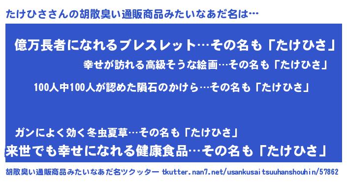 | ヒーロー風カッコイイあだ名 | 『正義の使者たけひさ』『ネオタケヒサ』 |