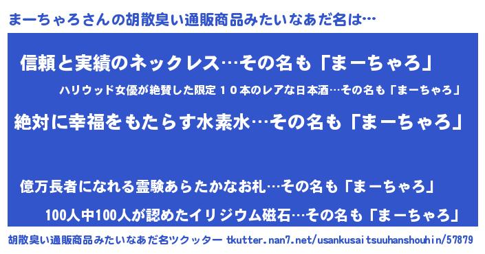 | ヘコむあだ名 | 『まーちゃろ(遠い目)』『まーお』 |