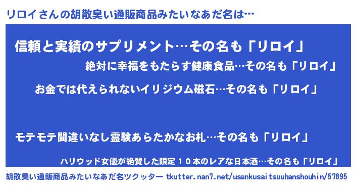 | ヘコむあだ名 | 『リロっ子』『リロイ(小並感)』 |