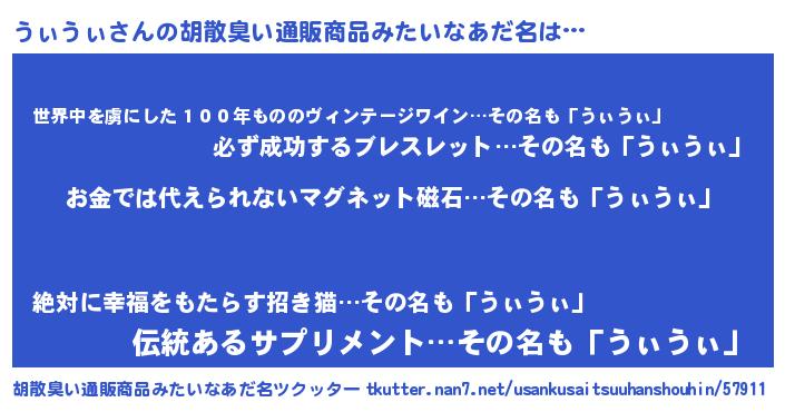 | ヒーロー風カッコイイあだ名 | 『慈愛の使者うぃうぃ』『仮面ウィダー』 |