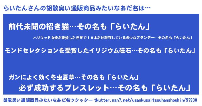 | ヘコむあだ名 | 『らいたん(笑)』『らいにー』 |