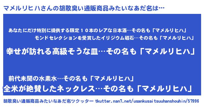| ヒーロー風カッコイイあだ名 | 『ウルトラマメルリヒハマン』 |