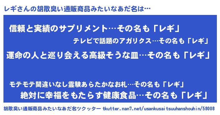 | 意味不明あだ名 | 『レギフォーエバー』『しいたけ科レギ属』 |