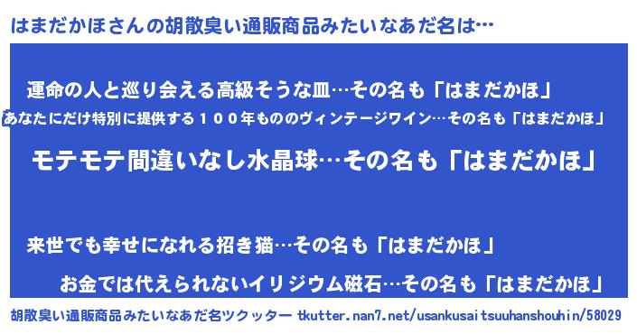 | ヘコむあだ名 | 『はまふぇ~』『酢こんぶ』 |