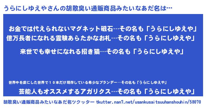 | 意味不明あだ名 | 『永久保存うらにしゆえや』 |