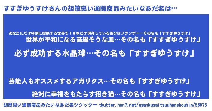 | ヘコむあだ名 | 『すすにゅー』『すすぎゆうすけ(遠い目)』 |