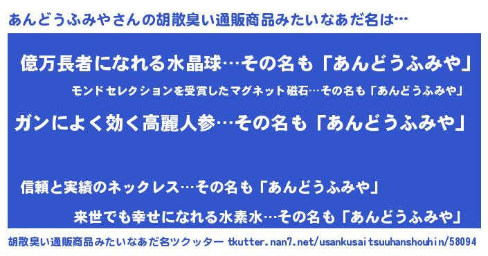 | 意味不明あだ名 | 『自称あんどうふみや』 |
