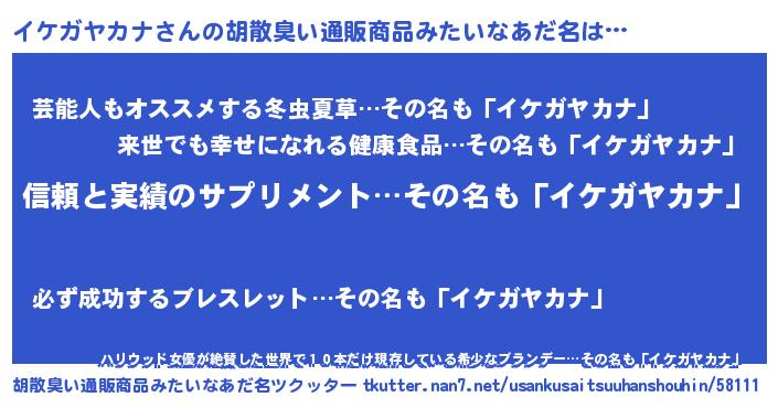 | ヘコむあだ名 | 『イケを』『イケガヤカナ(笑)』 |