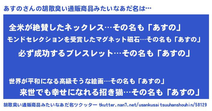 | 2回繰り返すあだ名 | 『あすあす』『にゃんにゃん』 |