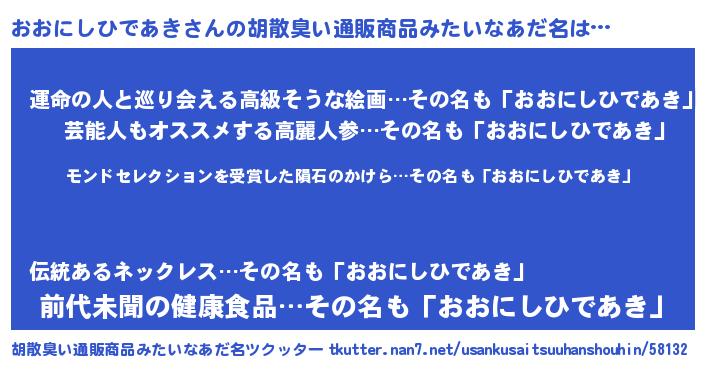 | ヘコむあだ名 | 『酢こんぶ』『おおにしひであき(震え声)』 |