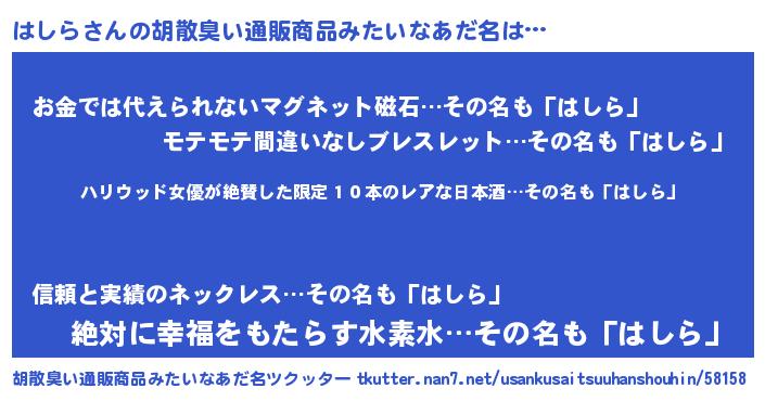 | 意味不明あだ名 | 『住所不定無職はしら(65歳)』 |