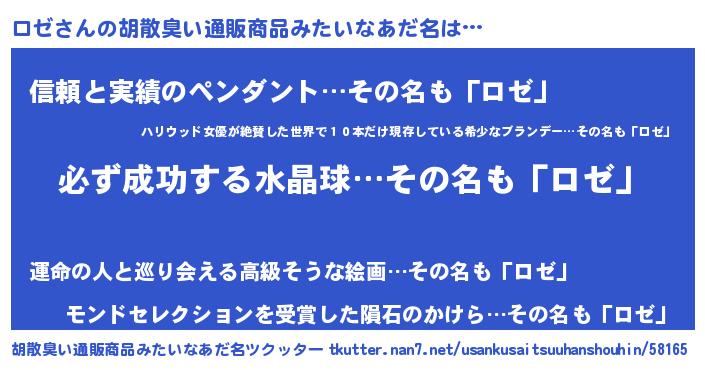| ヘコむあだ名 | 『ロゼにゅー』『ロゼっ子』 |