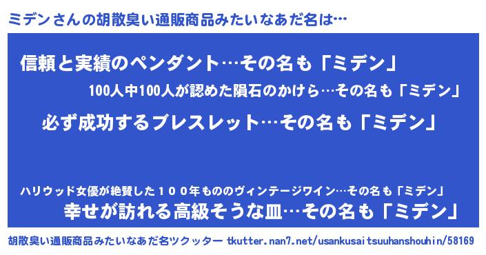 | 意味不明あだ名 | 『ペロリンミデン』『ミデンフォーエバー』 |