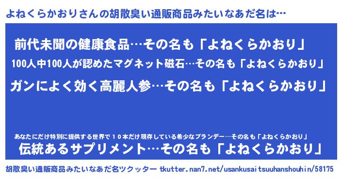 | 伝説のあだ名 | 『聞きしに勝る吟遊詩人よねくらかおり』 |