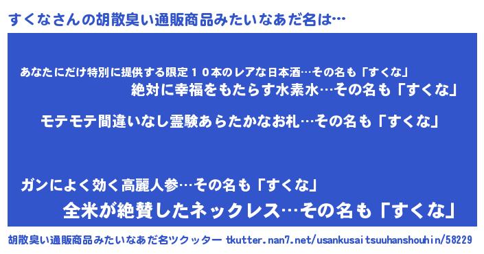 | 男性向けラノベタイトル風あだ名 | 『スクナアートオンライン』 |