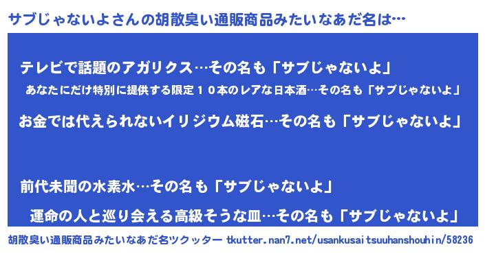 ヒーロー風カッコイイあだ名 | 『愛の使者サブじゃないよ』 |
