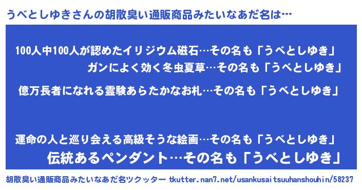 | ピコ太郎風あだ名 | 『ウコ六郎』『ウウ太郎』『ウベ十郎』 |