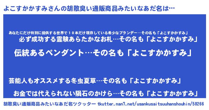 | 男性向けラノベタイトル風あだ名 | 『ダンジョンによこすかかすみを求めるのは間違っているだろうか』 |