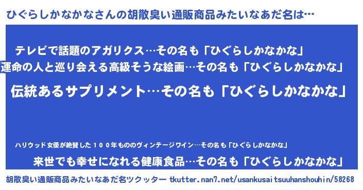 | 男性向けラノベタイトル風あだ名 | 『ひぐらしかなかなの嫁は女の子じゃないと思った?』 |