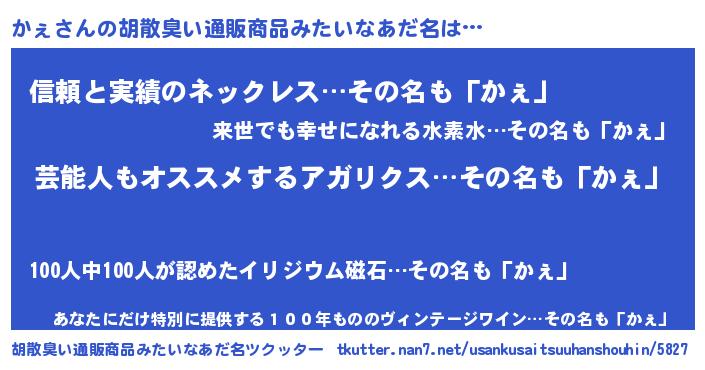 | 意味不明あだ名 | 『自称かぇ』『とにかく怪しいかぇ』 |