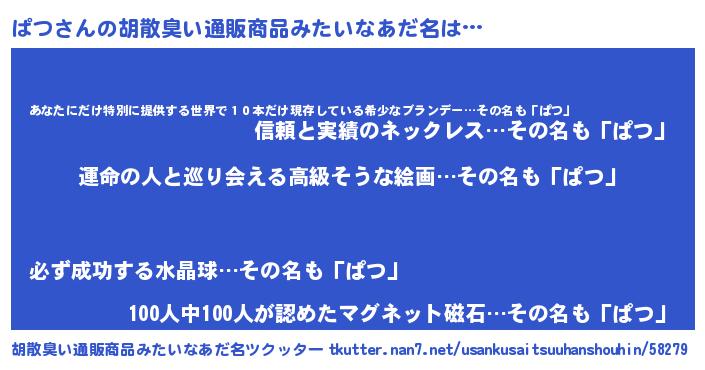 | ヒーロー風カッコイイあだ名 | 『ウルトラぱつマン』『仮面パツダー』 |