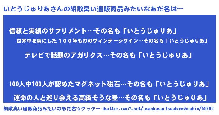 | 意味不明あだ名 | 『自称いとうじゅりあ』 |