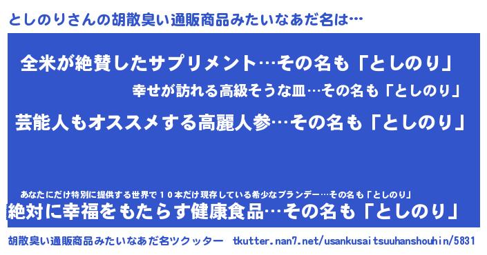 | 男性向けラノベタイトル風あだ名 | 『としのりに滅ぼされるだけの簡単なお仕事です』 |